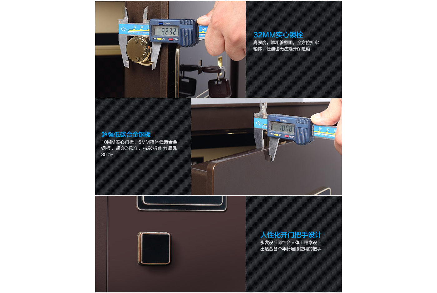 永發(fā)尚瑞系列指紋式3C保險柜35BPM3C-13尺寸說明:410高*390寬*330深mm(含底座) 重量:35kg