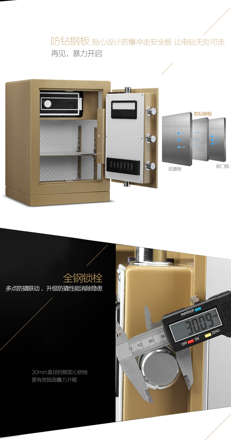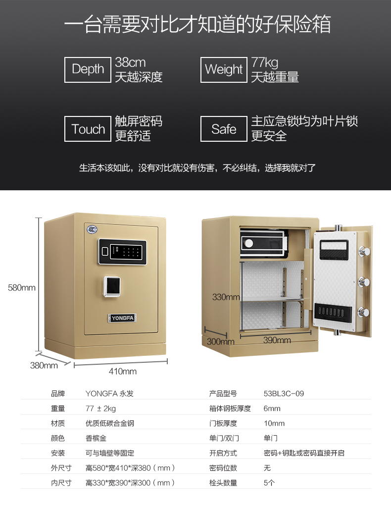 永發(fā)新品智瑞系列3C認證電子式保險柜53BL3C-09尺寸說明:600高*410寬*380深mm 重量:73kg