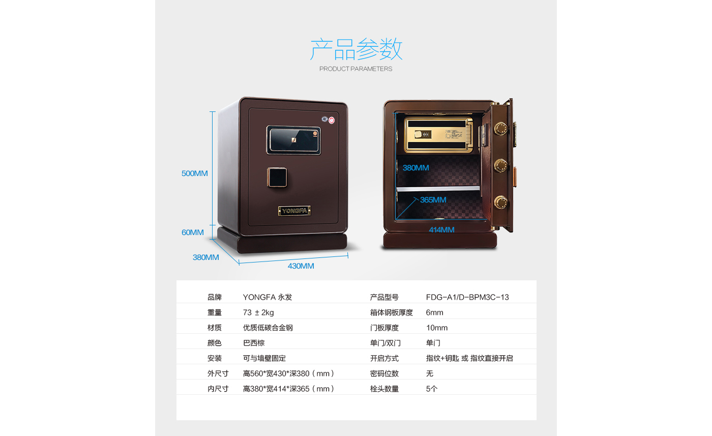 永發(fā)尚瑞系列指紋式3C保險(xiǎn)柜50BPM3C-13尺寸說明:560高*430寬*380深mm(含底座) 重量:73kg