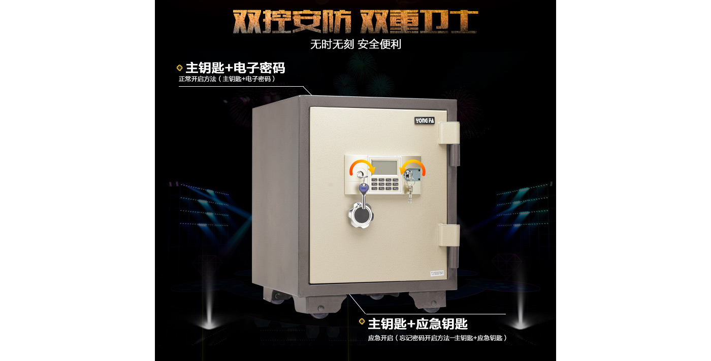 永發(fā)電子防火柜YB-530E尺寸說明:600高*460寬*510深mm(含底座) 重量:90kg