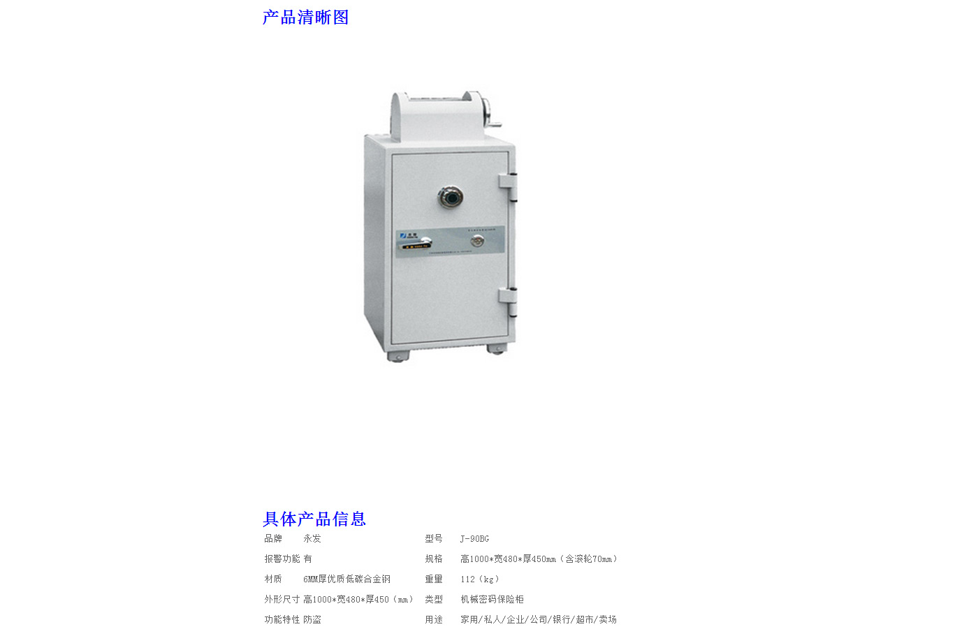 永發(fā)機械式投幣柜J-90BG尺寸說明:1000高*480寬*450深mm(含底座) 重量:112kg